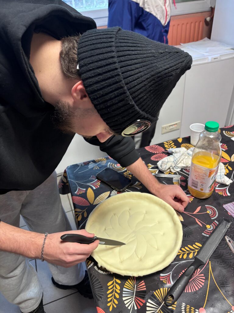 Ce mercredi, quatre résidents volontaires de la résidence sociale Jean Stauffer ont préparé trois galettes des rois lors d’un atelier cuisine. Munis d’une fiche recette préparée par l’assistante social et en totale autonomie, ils ont allié savoir-faire et convivialité.